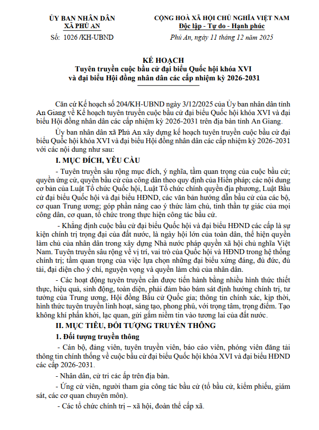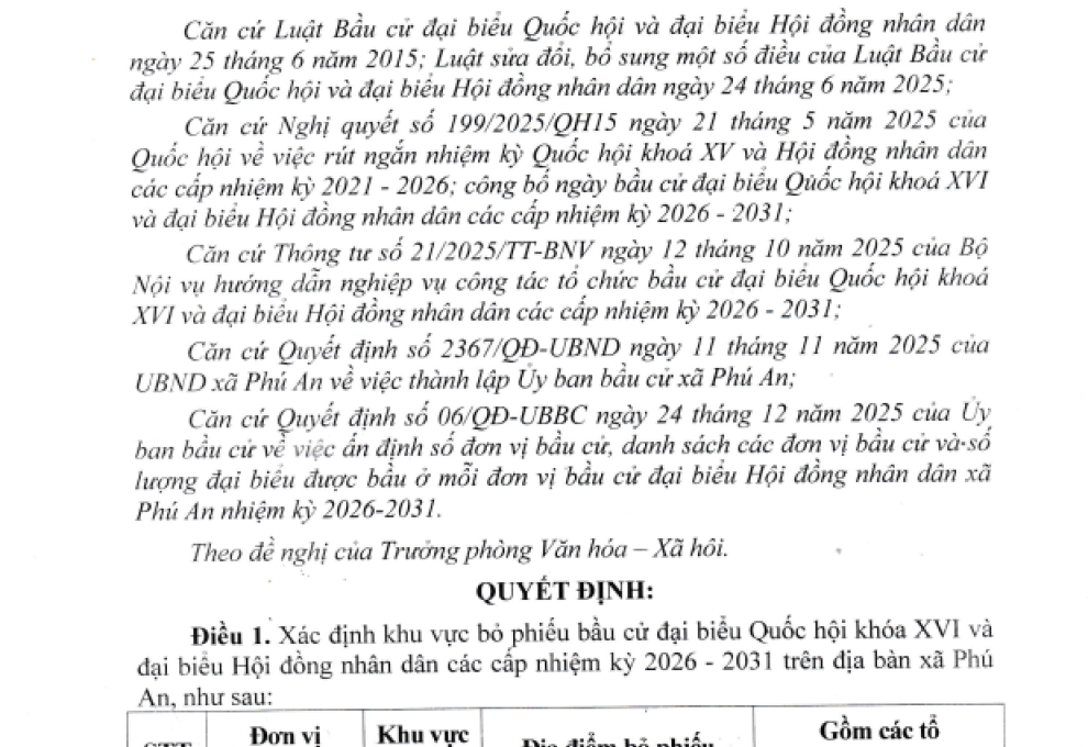 Ngày 30/1, Công an xã Phú An phối hợp Ban chỉ huy quân sự xã và Trạm y tế tổ chức Hội nghị triển khai Kế hoạch của Tiểu ban bảo đảm an ninh, trật tự y tế phục vụ bầu cử đại biểu Quốc hội khoá XVI và đại biểu HĐND các cấp nhiệm vụ nhiệm kỳ 2026 -2031.