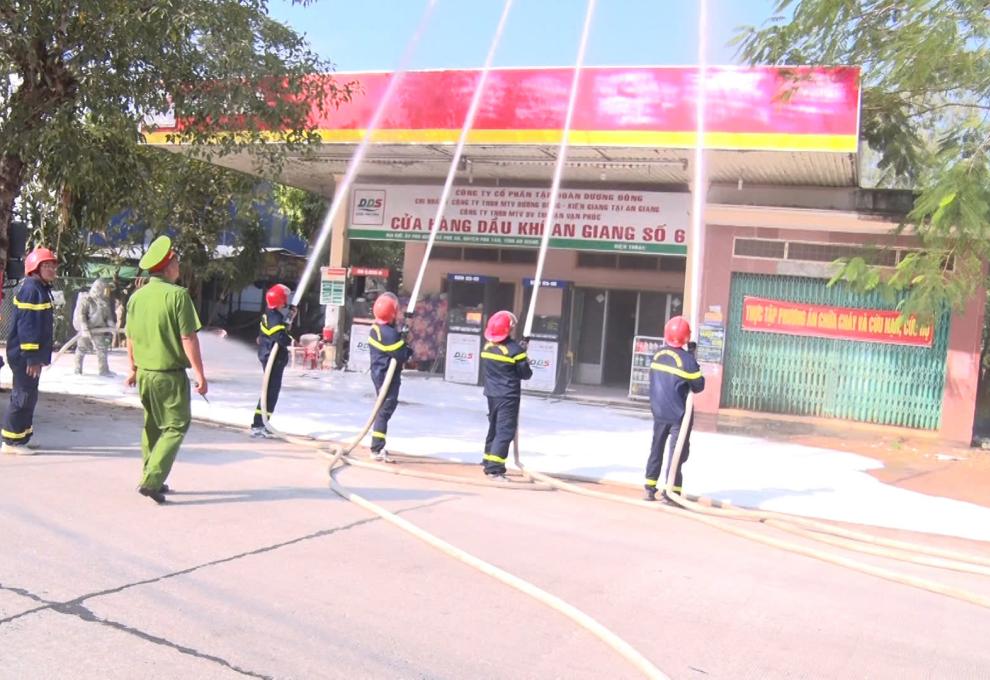 Ngày 29/1, tại xã Phú An, Đội Chữa cháy và cứu nạn cứu hộ (CNCH) khu vực Phú Tân phối hợp công ty TNHH MTV DVTM Vạn Vạn Phúc – Cửa hàng Dầu khí An Giang số 6 tổ chức thực tập phương án chữa cháy và CNCH tại công ty.