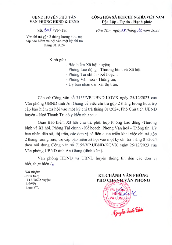 CHỈ TRẢ LƯƠNG HƯU TRỢ CẤP BHXH VÀO THÁNG 01 NĂM 2024