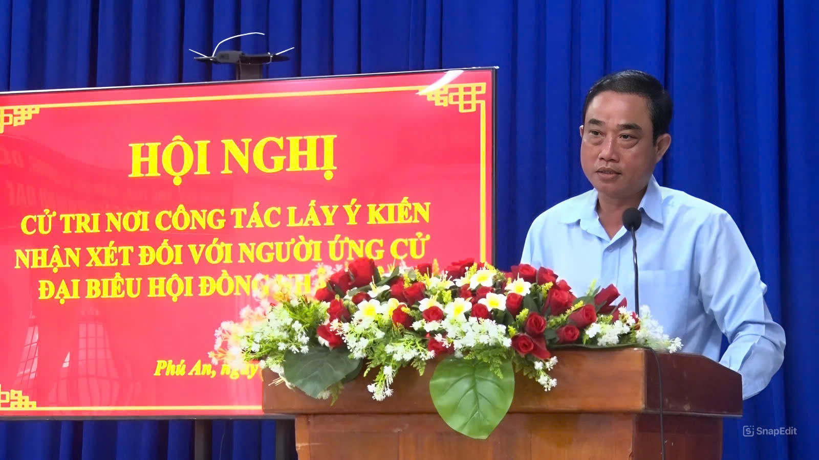 Phát biểu kết luận hội nghị, Bí Thư Đảng uỷ xã Phú An – Tăng Văn Nê yêu cầu các cơ quan đơn vị có liên quan tổ chức thực hiện đúng quy trình, đúng nguyên tắc, đảm bảo dân chủ, công khai, minh bạch, tăng cường công tác tuyên truyền trên hệ thống Đài truyền thanh xã về tiểu sử tóm tắt các đại biểu ra ứng cử để nhân dân trên địa bàn nắm rõ thông tin, bầu chọn những người đủ tiêu chuẩn, năng lực, uy tín tham gia ứng cử đại biểu Hội đồng nhân dân, đáp ứng yêu cầu nhiệm vụ trong giai đoạn mới./.
