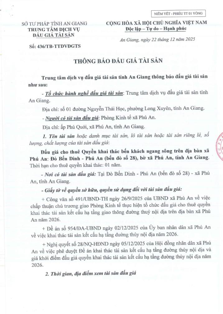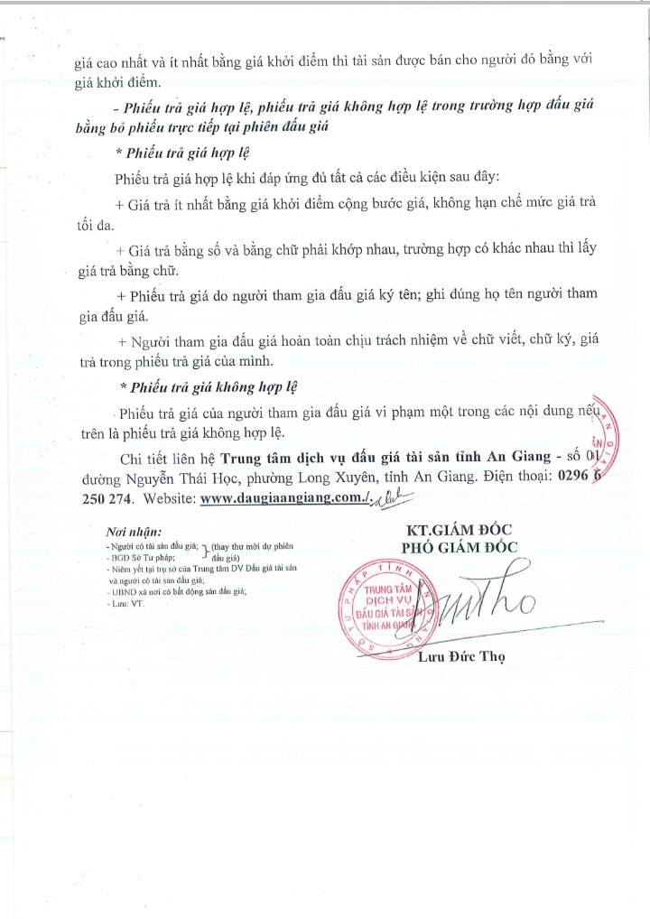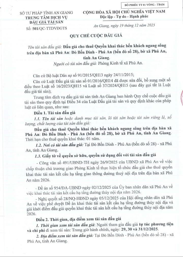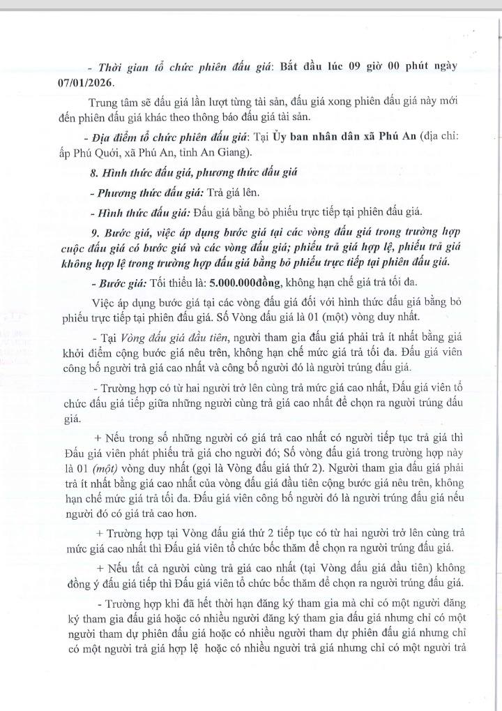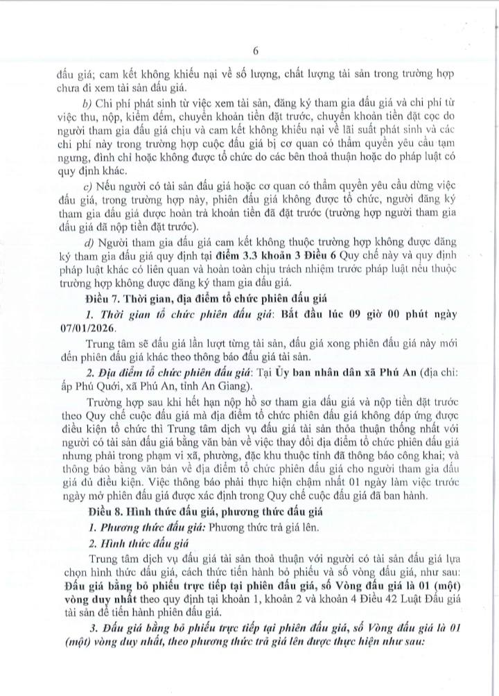 Thông báo đấu giá tài sản của Trung tâm dịch vụ đấu giá tài sản tỉnh An Giang. Quy chế cuộc đấu giá.