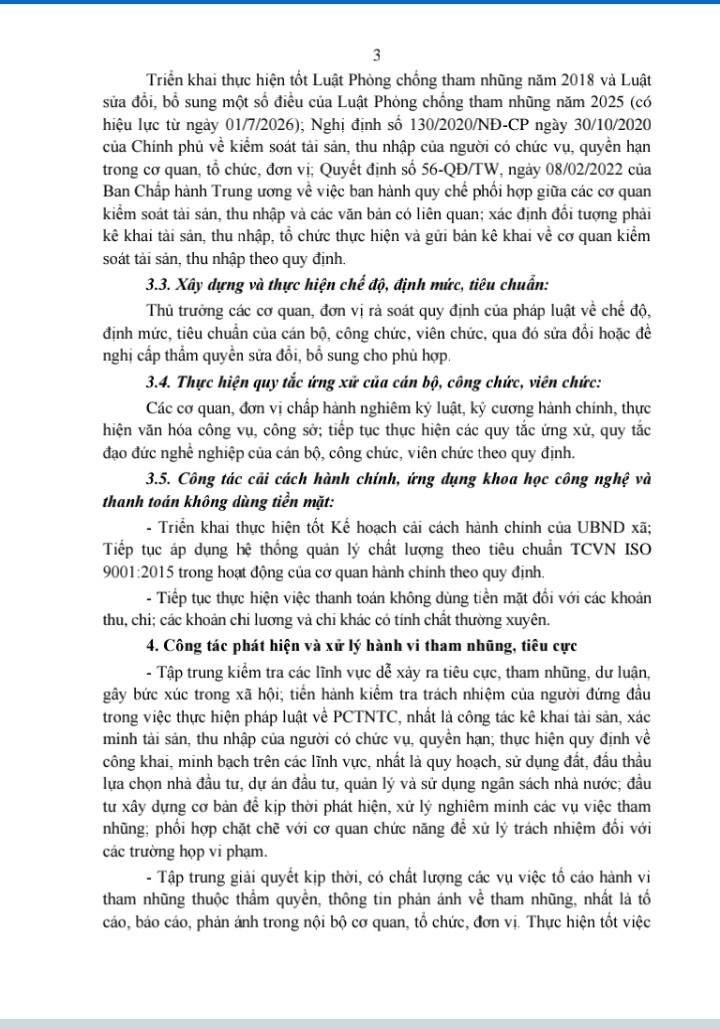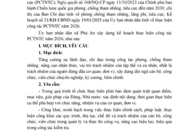 Kế hoạch thực hiện công tác phòng chống tham nhũng, tiêu cực năm 2026 của UBND xã Phú An